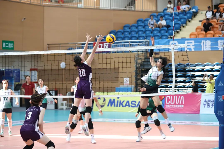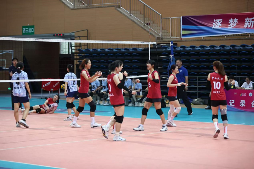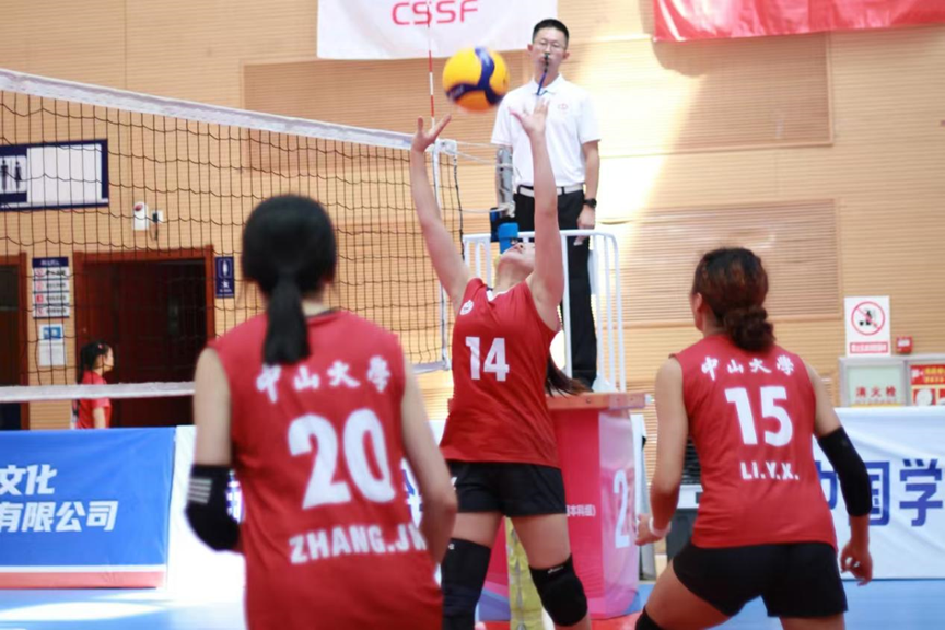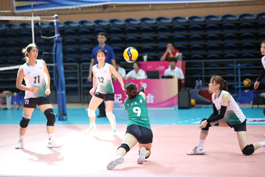 决赛对阵上届全国亚军上海交通大学队,现场气氛热烈,欢呼声响彻整个体育馆。上海交通大学队从开局便展现出出色的串联配合与稳定的进攻能力,中大女甲努力适应快节奏,但仍一度受限。教练组通过多次暂停和换人调整战术,0:2落后情况下,队伍重新找回节奏,顽强扳回一局。第四局双方展开高水平竞技,多次精彩回合引来观众阵阵惊呼,中大女甲不断追赶直至比分23:24,最终仍以一分之差惜败,收获亚军。