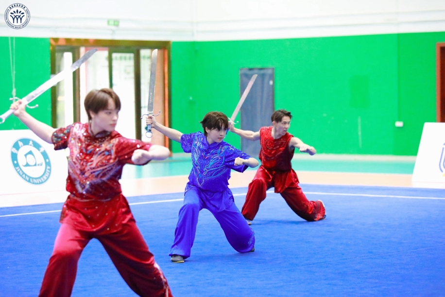 赛场喝彩与助威声此起彼伏,充分展现了大湾区青年学子昂扬拼搏、永不言败的体育精神,生动诠释了中华传统武术的力与美。