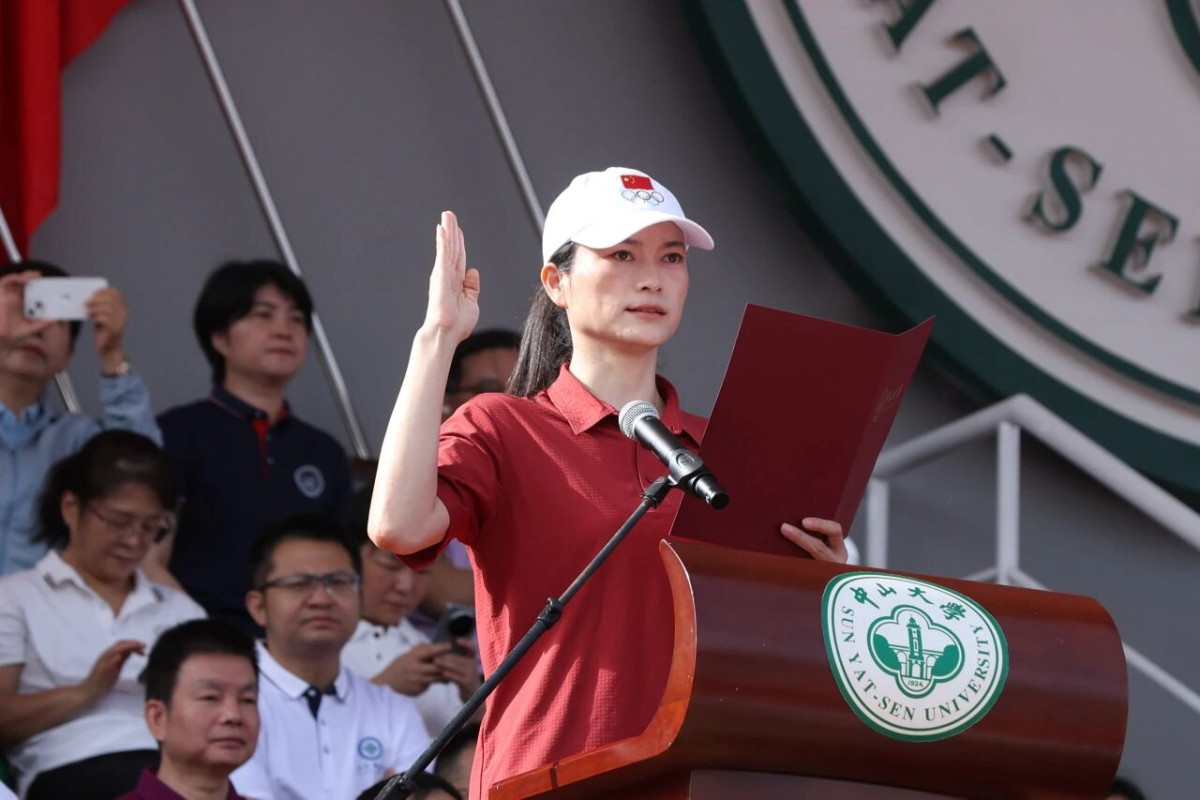 赛艇世界锦标赛冠军、体育部副教授田靓作为裁判员代表宣誓。