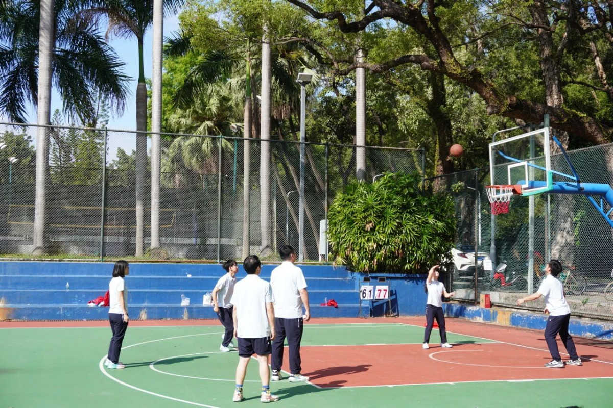 师生们在操场上合影留念,珍存难忘记忆,为秋日的康乐园增添了一抹温馨的色彩。