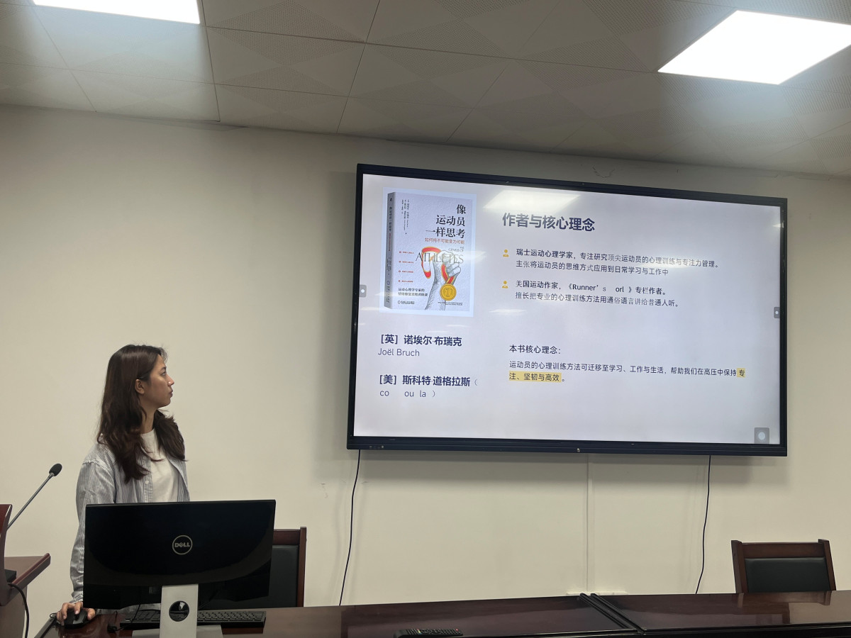 柳梦灵同学以《像运动员一样思考:让心智更专注坚韧》为题,分享了该书提出的“五大认知工具”与“六阶段路径”,强调将运动员心理训练方法迁移至学习与生活中,帮助提升专注力与心理韧性。她结合研究生科研实际,介绍了“If-Then计划”“情绪觉察五感法”等实用工具,并建议通过“个人训练日志”持续追踪目标进展。