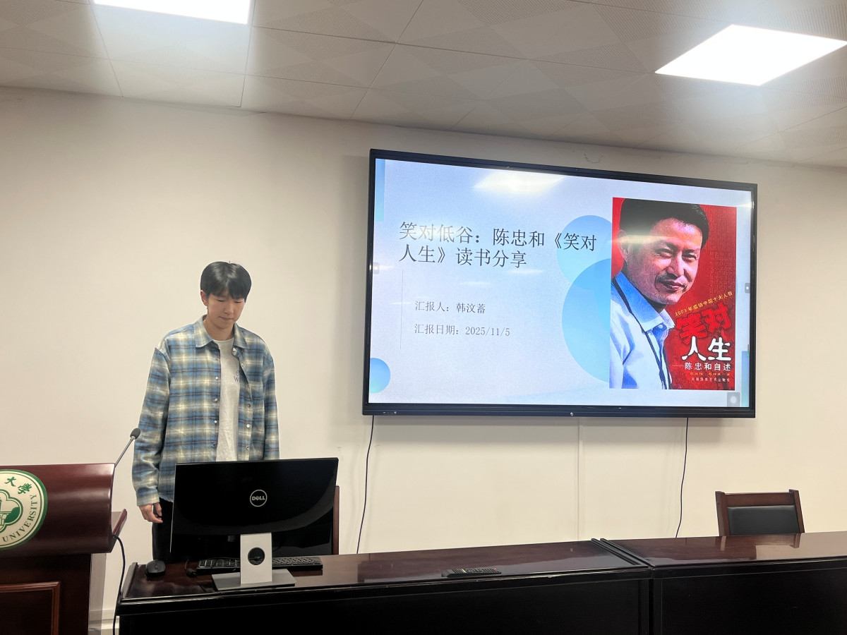 韩汶蓄同学围绕陈忠和自传《笑对人生》,以“笑对低谷”为主线,系统剖析了陈忠和在家庭变故与执教压力下仍以微笑应对挑战的心理策略。他总结了“笑容三层次”理论——自我镇静、信号传递与文化塑造,指出其在不同场景中的迁移价值,鼓励同学们以微笑与坚韧面对学术与生活中的困难。