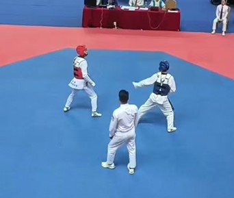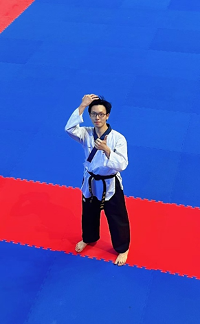 在品势这一强调稳定与美感的项目中,陈观忠始终未有松懈。在繁重的学业与学生工作之余,他坚持每周三至四次训练,常常练至闭馆。比赛中,他全力以赴,积极与全国各地选手交流学习,展现“友谊第一,比赛第二”的体育精神,最终斩获两枚金牌,并在品势项目中获得包括专业组在内的“全场最高分”。