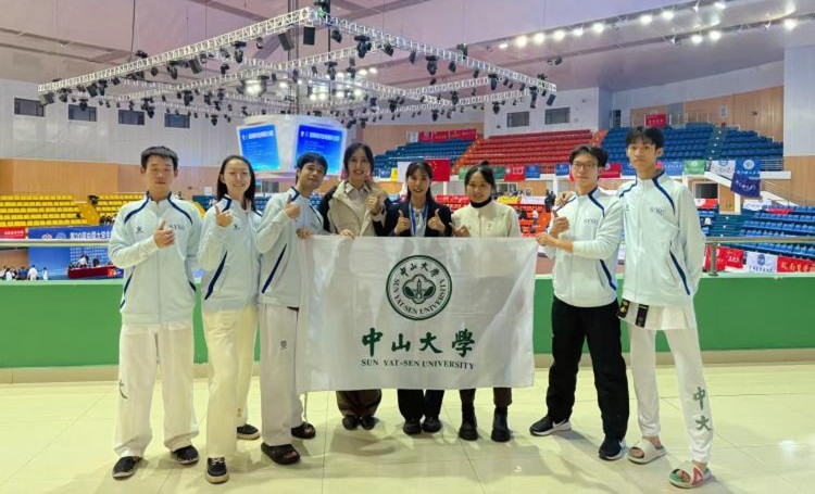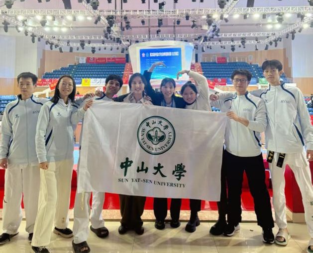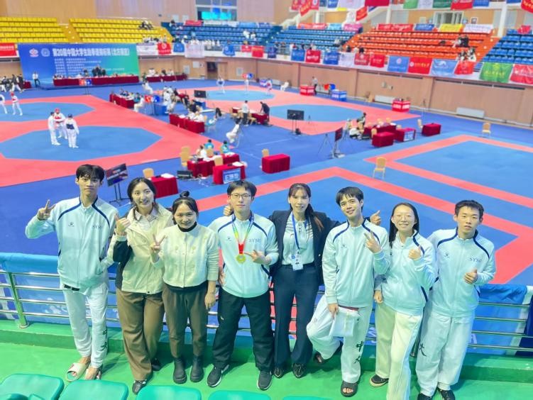 中山大学跆拳道队派出5名队员参赛,在激烈角逐中斩获3金、1铜及1个第五名的优异成绩。陈观忠、林世延、李炤卓尔、邹伟鹏与李涧5位选手凭借出色的竞技状态与顽强的拼搏精神,充分展现了中大学子的精神风貌。吴静云老师获评“优秀教练员”,林世延获“优秀运动员”称号,中山大学跆拳道队荣获“道德风尚奖”。