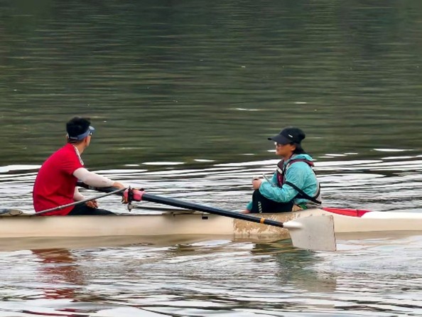 教练团队的辛劳,深深融入每一次划桨。田靓、赵云雷、单建功等教练日复一日的专业指导,是队员技术持续精进的关键。尤其令人感念的是田靓老师——为实时纠正动作,她曾骑车沿生物岛蜿蜒岸线一路跟随,通过对讲机传达指令;无数个清晨五点,天光未亮,她已守候训练场,陪伴队员迎接破晓。正是教练们“比队员更早到、更晚走”的坚守,铸就了队伍扎实的技术功底。