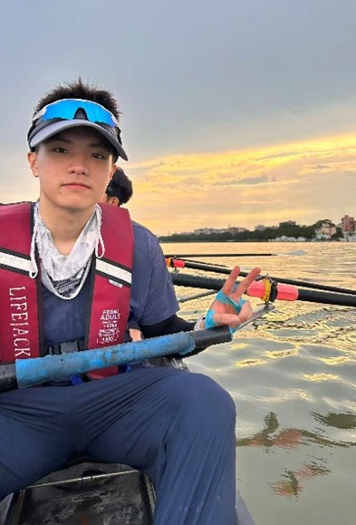 高中阶段的赛艇基础使他迅速融入团队,而中大赛艇队的系统训练则助其实现技术飞跃。难能可贵的是,作为年轻队员,他在训练与比赛中始终沉着冷静,最终承担起领桨手重任,在赛场上引领全艇保持流畅节奏。