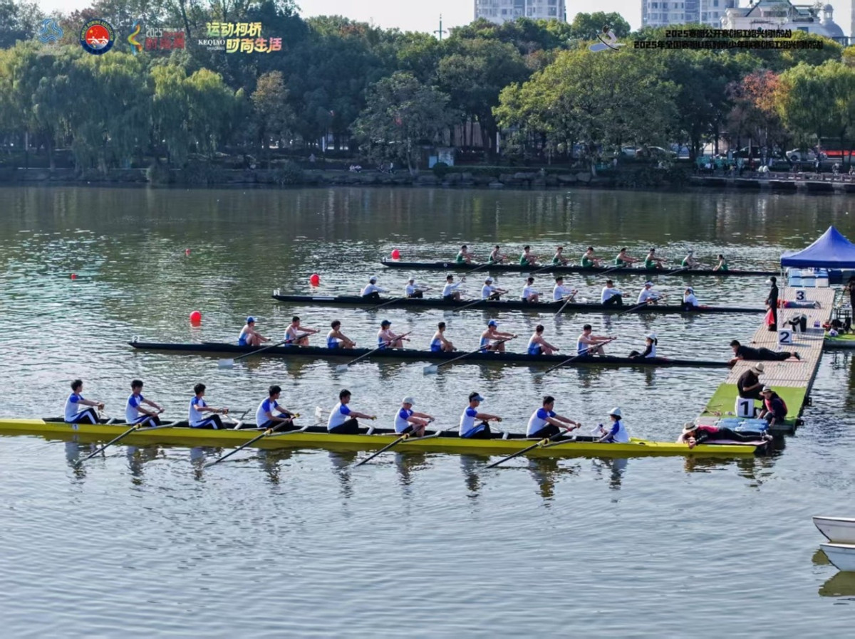 冲线一刻,瓜渚湖的碧波为之沸腾!11月16日,2025赛艇公开赛(浙江绍兴柯桥站)传来喜讯——中山大学赛艇队在大学组男子八人单桨有舵手项目中脱颖而出,勇夺桂冠!女子四人双桨项目荣获第六名!在个人陆上划船机竞速赛中,我校学子吴睿扬、丘馨梦分获男子组冠军、女子组季军!这些成绩不仅凝聚了团队的汗水与默契,更展现了中大人昂扬的体育精神,是为中山大学建校101周年的诚挚献礼!