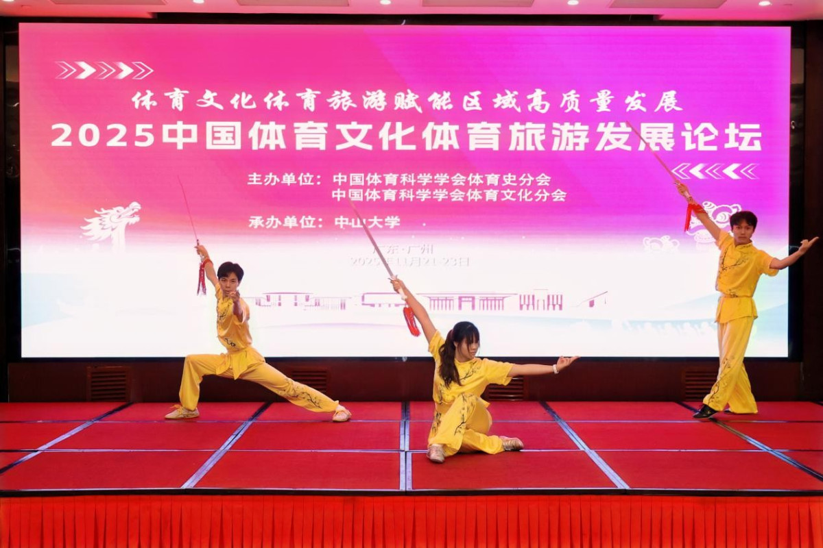 11月21日-23日,2025中国体育文化体育旅游发展论坛在广东广州顺利举办。本次论坛由中国体育科学学会体育史分会、中国体育科学学会体育文化分会主办,中山大学承办,以“体育文化体育旅游赋能区域高质量发展”为主题,旨在深入贯彻落实习近平总书记对体育工作和文化工作的重要论述、对推进区域协调发展特别是推进粤港澳大湾区建设的重要指示精神,推动粤港澳大湾区体育交流与合作,发挥体育文化体育旅游在助力区域高质量发展中的积极作用。
